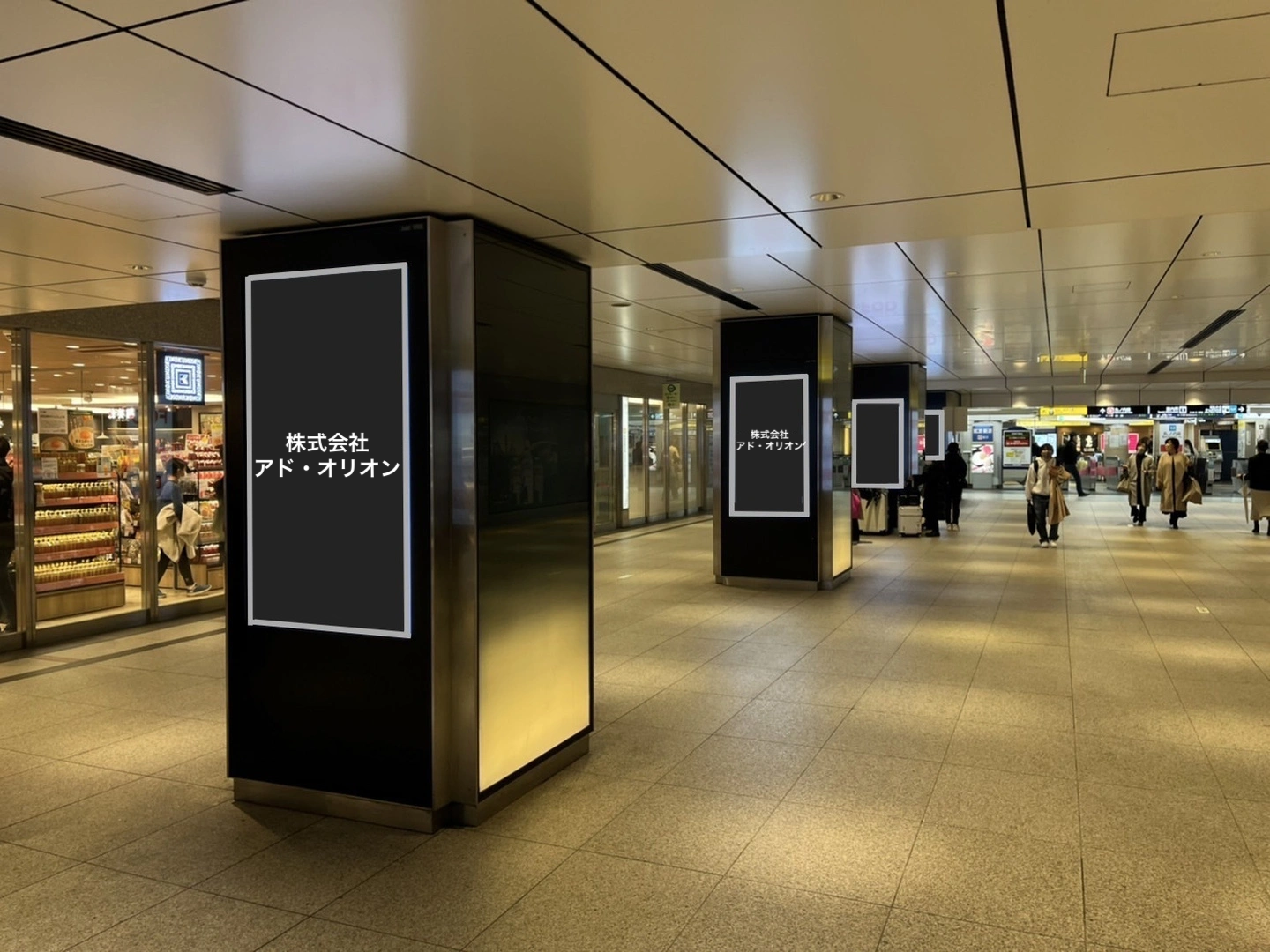 画像にあるフラッグ型広告の他に、アドピラーや自動改札スッテカー、集中貼りなど駅フロア内で様々なタイプの広告があります。 通学、通勤など日常的に接触することが多い媒体になります。
