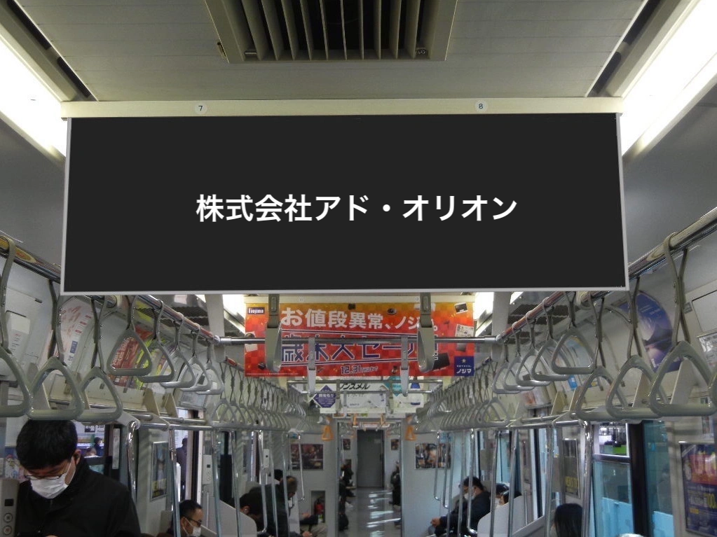車両メディアは中づり、窓上、つり革、車両ジャック、デジタルサイネージなど提出ができます。 画像にある広告は中吊り広告で車両の中央に配置され車両メディアでは一等地と言える場所に配置されます。何気なく目にする機会が多く高い視認性が期待できます。